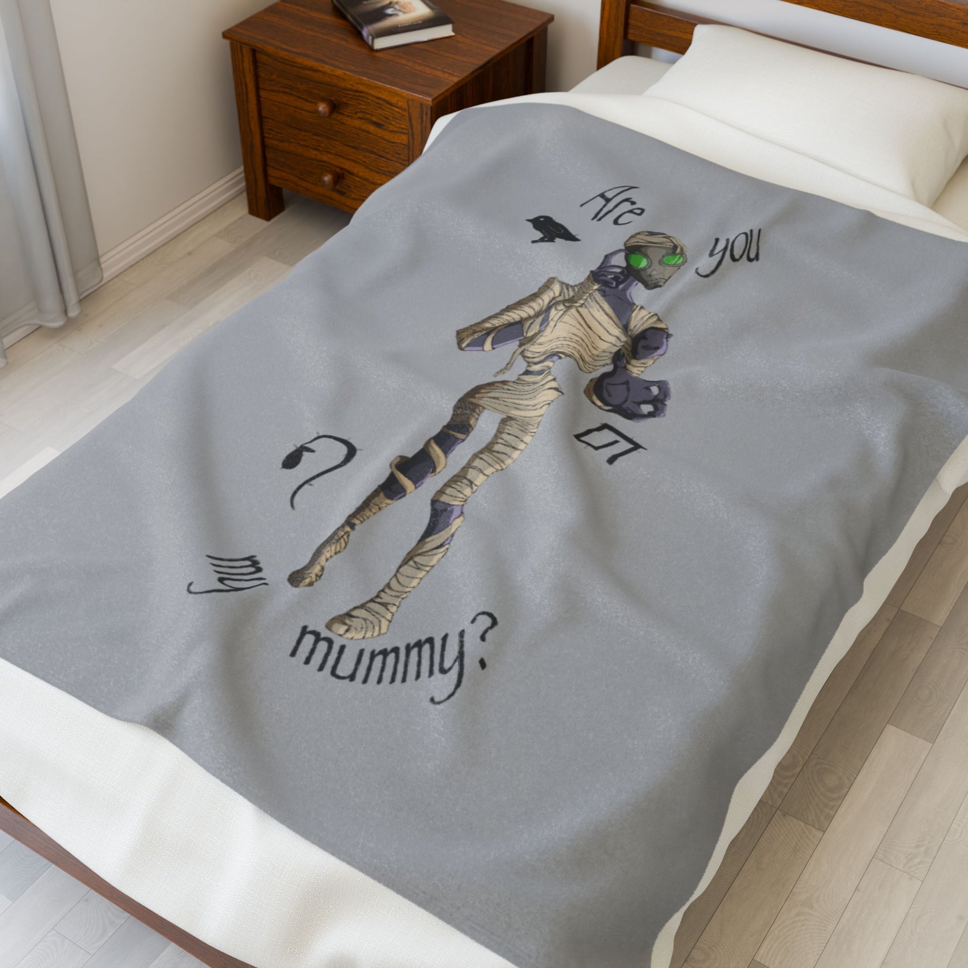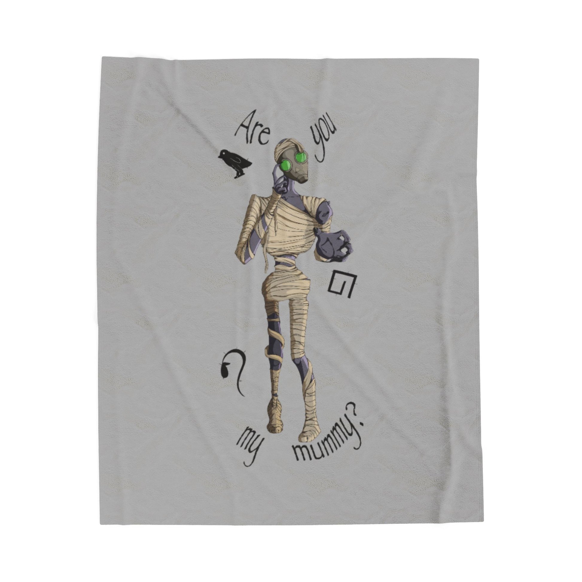 Wrap yourself in slightly spooky comfort with the "Are You My Mummy?" fleece blanket, featuring original artwork by Sammi Vallone (linktr.ee/lunainkart), inspired by the The Gilded Crow.
